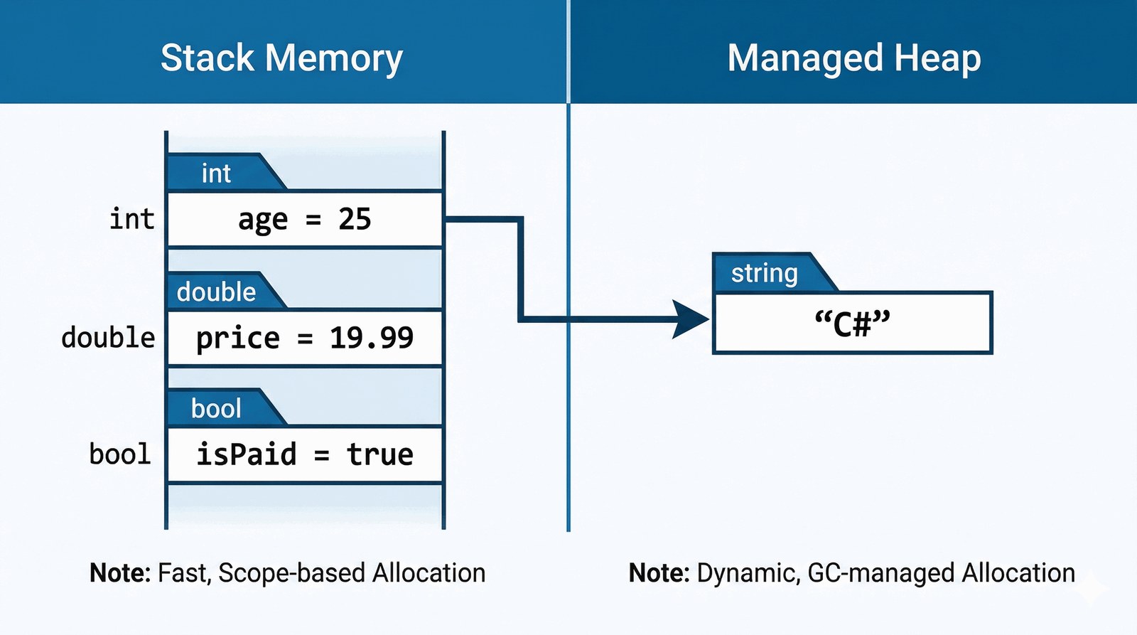 Poznanie podstawowych typów danych dostępnych w języku C# oraz umiejętność przypisywania do nich wartości pochodzących od użytkownika.