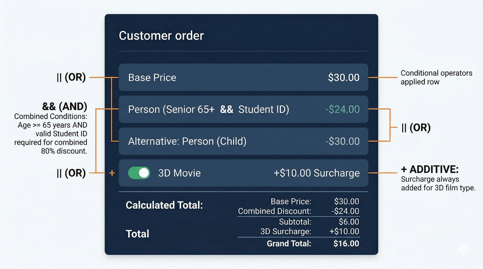 Wyobraź sobie, że budujesz system sprzedaży biletów dla lokalnego kina. Cena bazowa biletu wynosi 30 zł, ale system musi automatycznie naliczać zniżki na podstawie wieku i statusu studenta. Dzieci do lat 7 wchodzą za darmo (0 zł). Młodzież i studenci w wieku od 7 do 26 lat otrzymują 50% zniżki, o ile posiadają ważną legitymację. Seniorzy powyżej 65 roku życia mają stałą zniżkę 30%. Twój program powinien zapytać o wiek, a następnie – jeśli wiek mieści się w przedziale studenckim – dopytać o posiadanie legitymacji (T/N). Wykorzystaj operatory logiczne (AND oraz OR) do połączenia tych warunków w elegancki sposób. Dodatkowo, użyj instrukcji switch, aby pozwolić użytkownikowi wybrać rodzaj seansu (2D lub 3D), gdzie seans 3D dolicza dodatkowe 10 zł do ostatecznej ceny. Zadanie to doskonale uczy budowania wielowarstwowej logiki biznesowej, która jest podstawą większości aplikacji komercyjnych.
