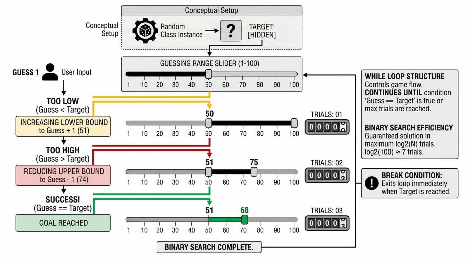 Zastosowanie pętli while oraz klasy Random do obsługi interaktywnych procesów o nieznanej liczbie powtórzeń.